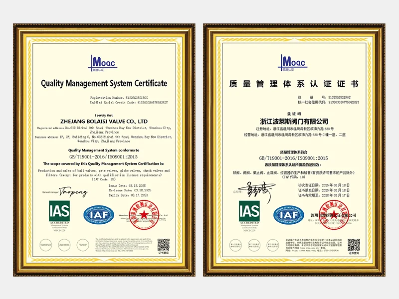 Zhejiang Bolaisi Valve Co., Ltd. ดำเนินธุรกิจในอุตสาหกรรมวาล์วมานานกว่า 20 ปี บริษัทได้รับการจดทะเบียนและก่อตั้งอย่างเป็นทางการในปี 2013 หลังจากพัฒนามานานกว่าสิบปี ความต้องการทางธุรกิจของ Bolaisi Valve ก็เพิ่มขึ้นอย่างต่อเนื่อง เพื่อตอบสนองความต้องการที่เพิ่มขึ้นเหล่านี้ บริษัทจึงได้จัดตั้งบริษัทการค้านำเข้าและส่งออกในปี 2568 ผลิตภัณฑ์หลักของบริษัท ได้แก่วาล์วประตูs, วาล์วโลก, เช็ควาล์ว, บอลวาล์ว, วาล์วผีเสื้อและตัวกรอง ตลอดการพัฒนาบริษัทได้รับการสนับสนุนอย่างดีจากทุกภาคส่วนของสังคมและลูกค้า เมื่อเผชิญกับความท้าทายในอนาคต บริษัทจะใช้ปรัชญาการดำเนินธุรกิจแบบใหม่ ปลูกฝังวัฒนธรรมองค์กรที่มีเอกลักษณ์อย่างระมัดระวัง และอุทิศตนเพื่อมอบโซลูชั่นที่ใช้งานได้จริงแก่ลูกค้าทั้งในประเทศและต่างประเทศ ชื่อเสียงที่ดีขึ้น ผลิตภัณฑ์คุณภาพสูงขึ้น และบริการที่ครอบคลุมมากขึ้น เรายึดมั่นในหลักการทางธุรกิจที่ว่า "การแสวงหาความเป็นเลิศอย่างไร้ขีดจำกัด" และ "ทุกสิ่งเพื่อลูกค้า" เสมอ เรายินดีต้อนรับลูกค้าทั้งเก่าและใหม่จากในประเทศและต่างประเทศอย่างจริงใจเพื่อเยี่ยมชมบริษัทของเราเพื่อขอคำแนะนำและความร่วมมือตามหลักการของ "คุณภาพและราคาที่สมเหตุสมผล ข้อได้เปรียบเสริม และผลประโยชน์ร่วมกัน" Bolaisi Valve ยินดีที่จะทำงานร่วมกับคุณ เติบโตไปด้วยกัน และสร้างอนาคตที่สดใส!